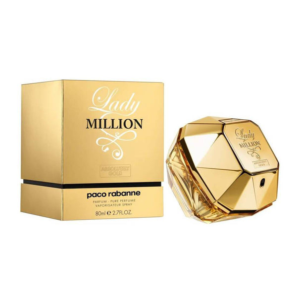 Paco Rabanne Lady Million Absolutely Gold the taste of pure sensation, no limits. An exhilarating new fragrance that stimulates the senses. One inhale and the world is yours for the taking high from life. A daring adventure perfumed in a heat wave of the dangerously intoxicating, the irresistibly indulgent.